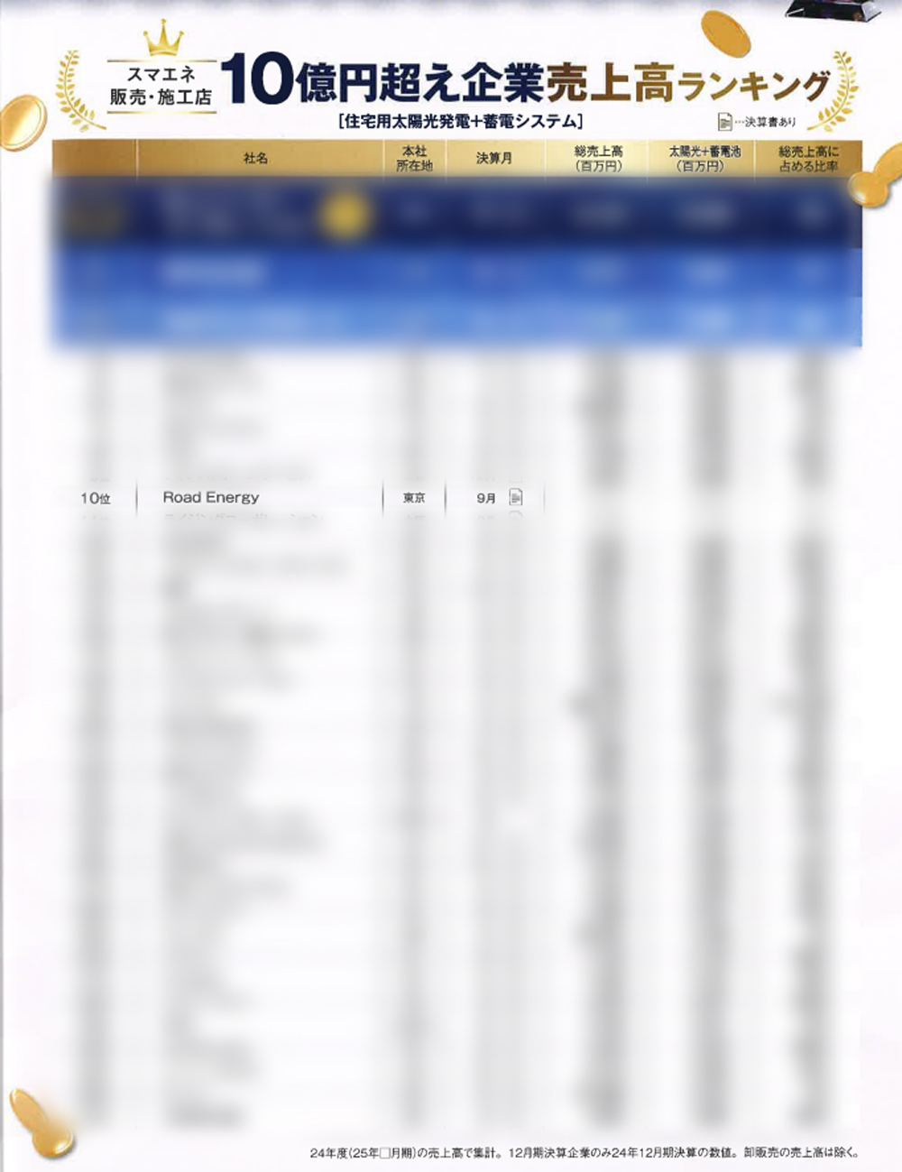 株式会社Road Goal Holdingsの子会社である株式会社Road Energyは、2025年12月20日発刊のスマートハウス企業売上高ランキングにおいて全国トップ10位になりました!